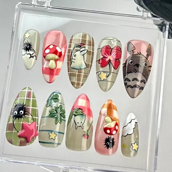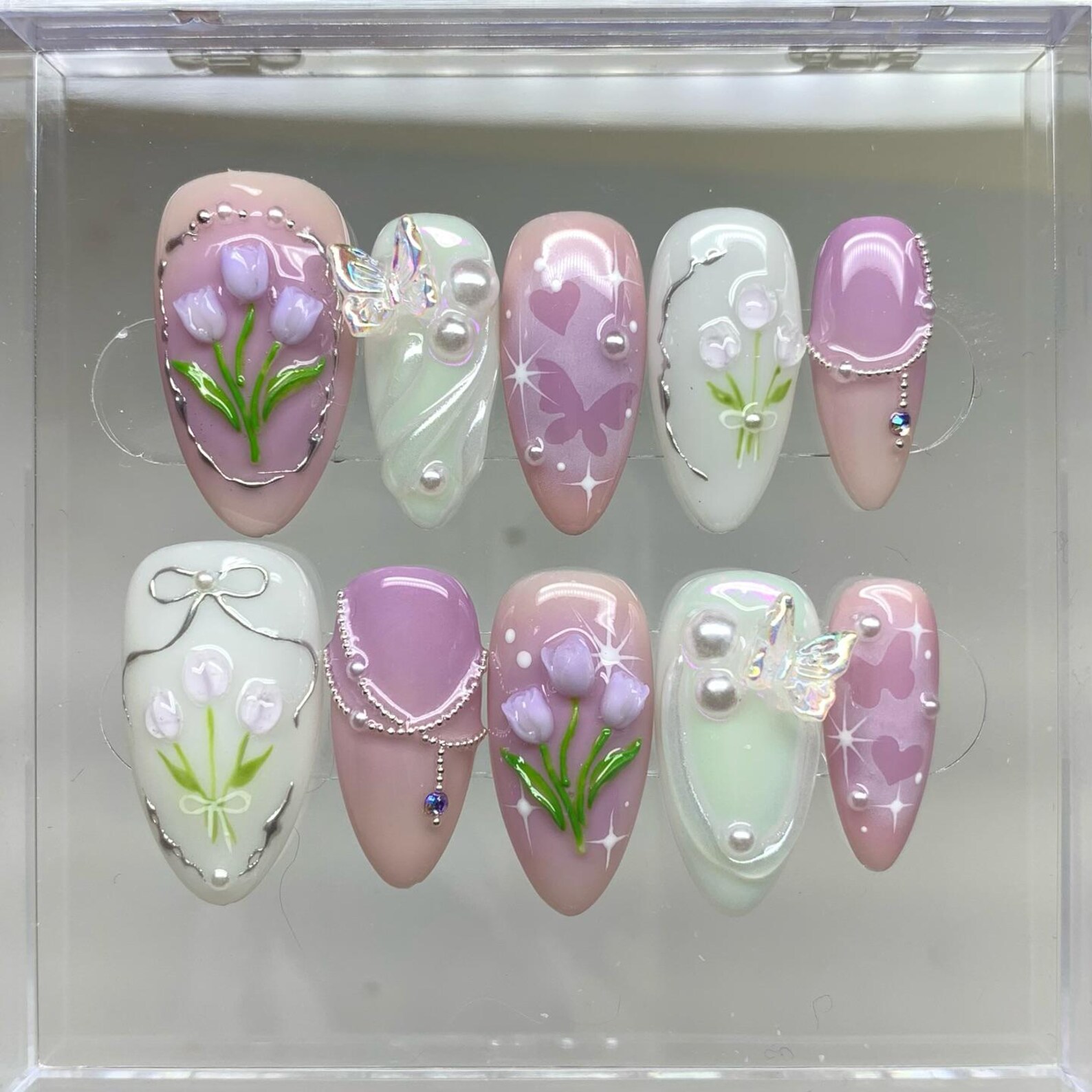 Fairycore Pastel Floral Press-On Nails, Pastel Nature-Inspired Nail, Handmade Nail Set