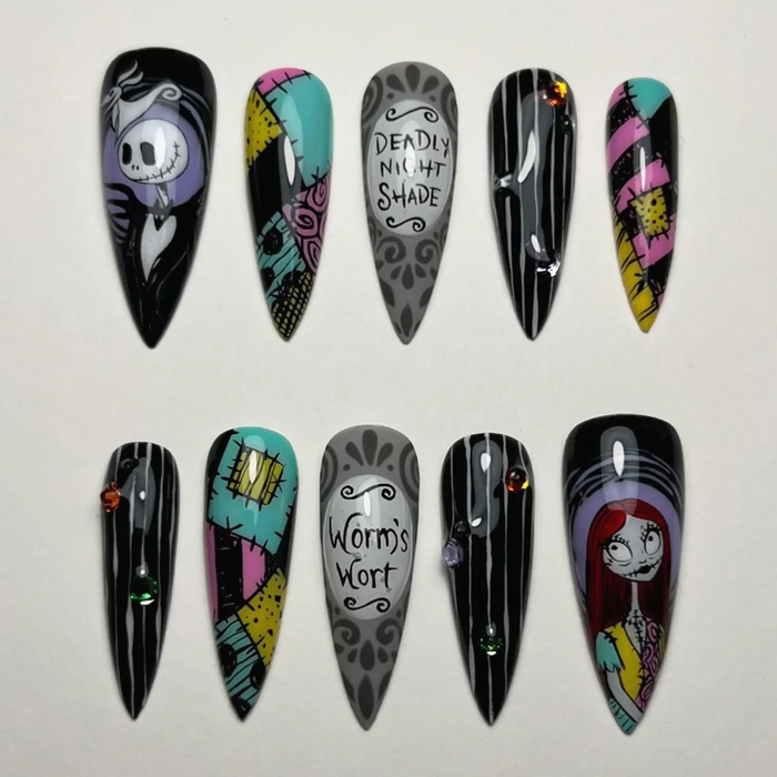 Nightmare Before Christmas Press On Nails, Handmade Nail Set For Halloween Costume