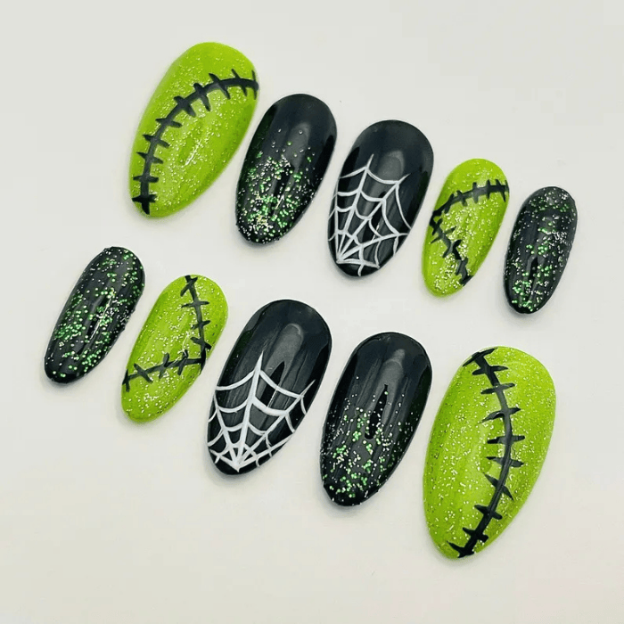 Witchy Dark Green Cat Eyes Sppoky Halloween Nail Box