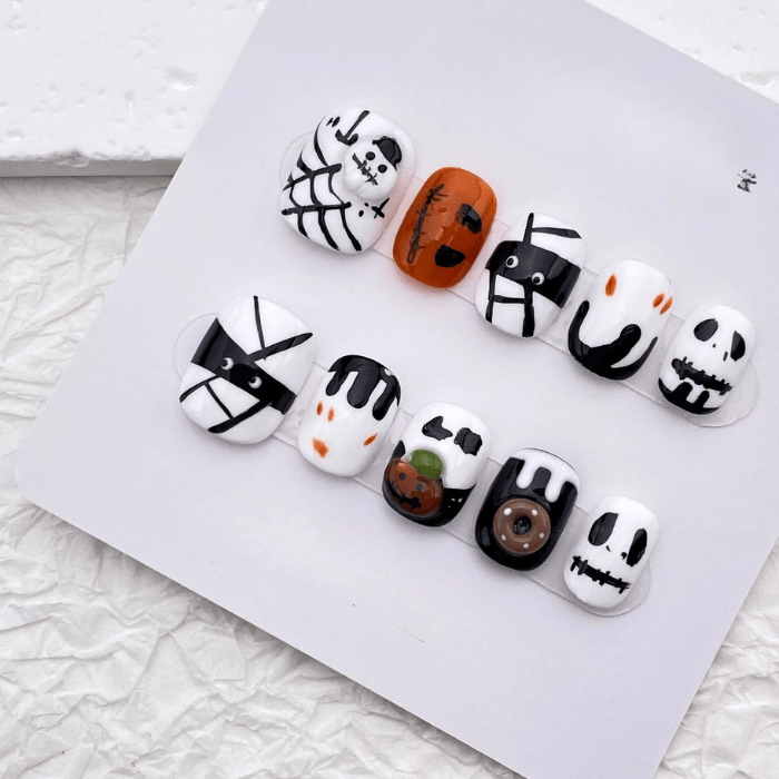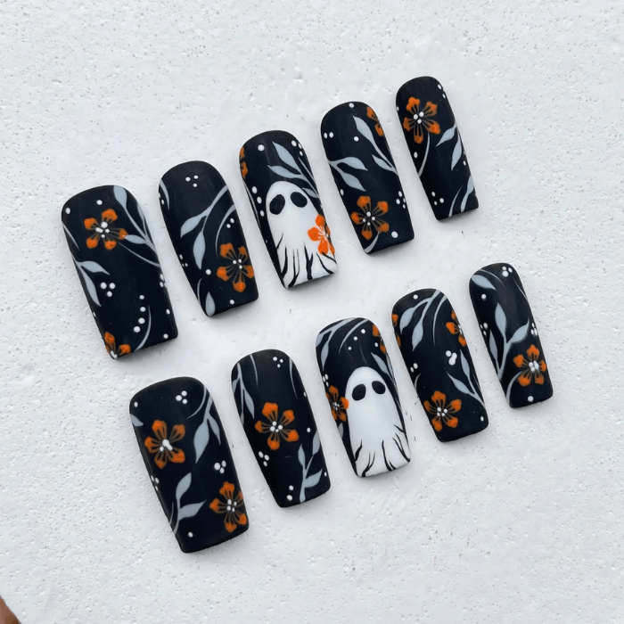 Classic Black & White Ghost Spooky Halloween Nail Box