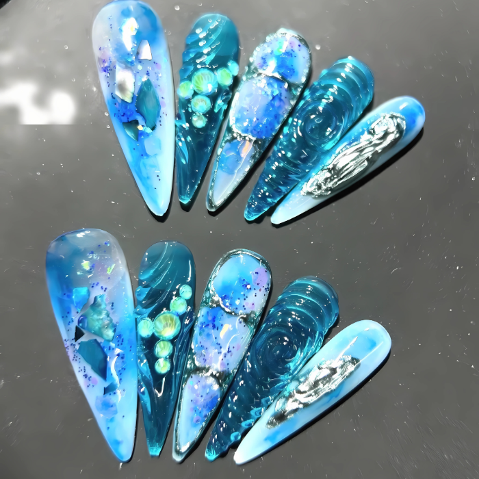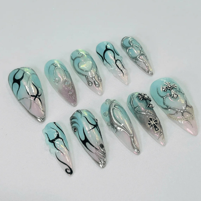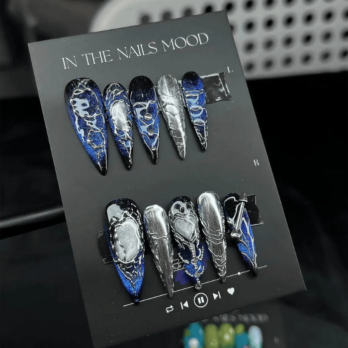 Dark Vibe Water Marble Effect For Aesthetic Girl Press-on Nail Box