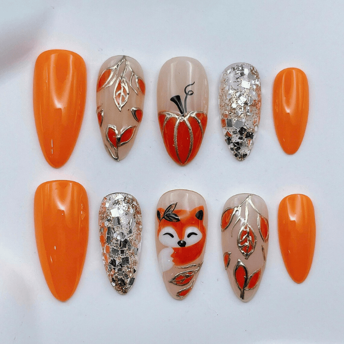 Unique Glowing Maple Leaf Autumn Vibe Nail Art Set