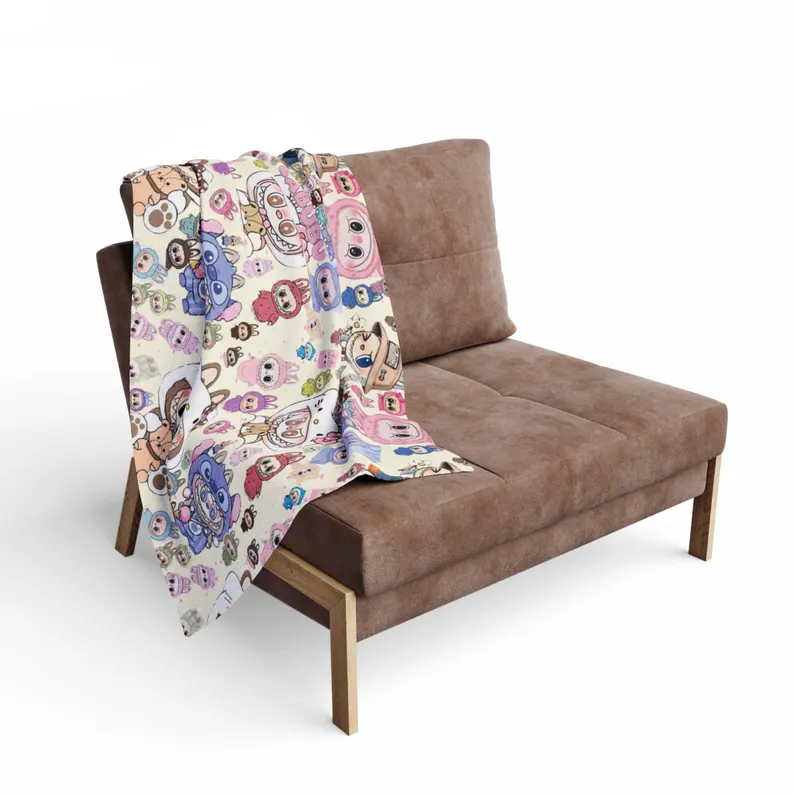 New Design Cute Labubu Monsters Pattern Fleece Blanket, Cute Gift For Labubu Fans