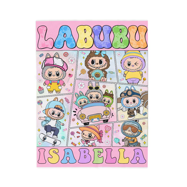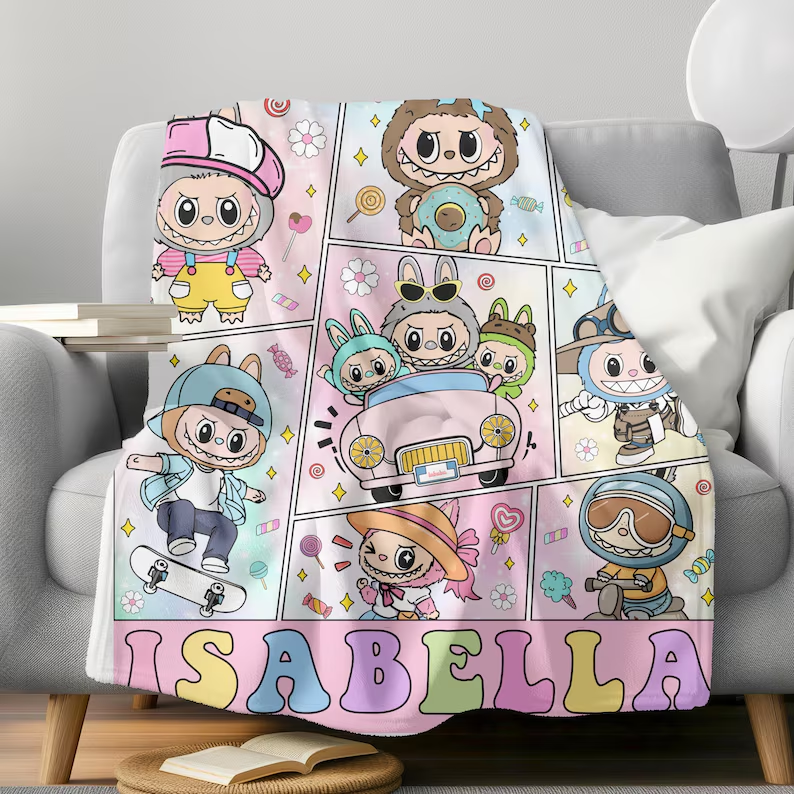 Personalized Funny Labubu Dolls Cartoon Fleece Blanket