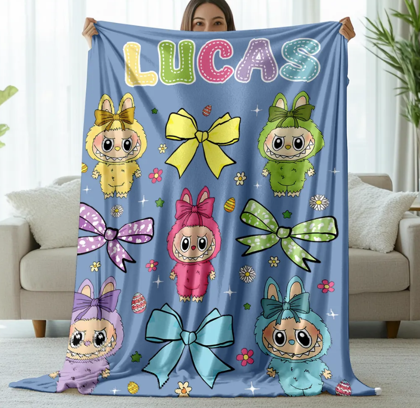 Personalized Labubu Monsters And Colorful Bows Full-Printed Fleece Blanket