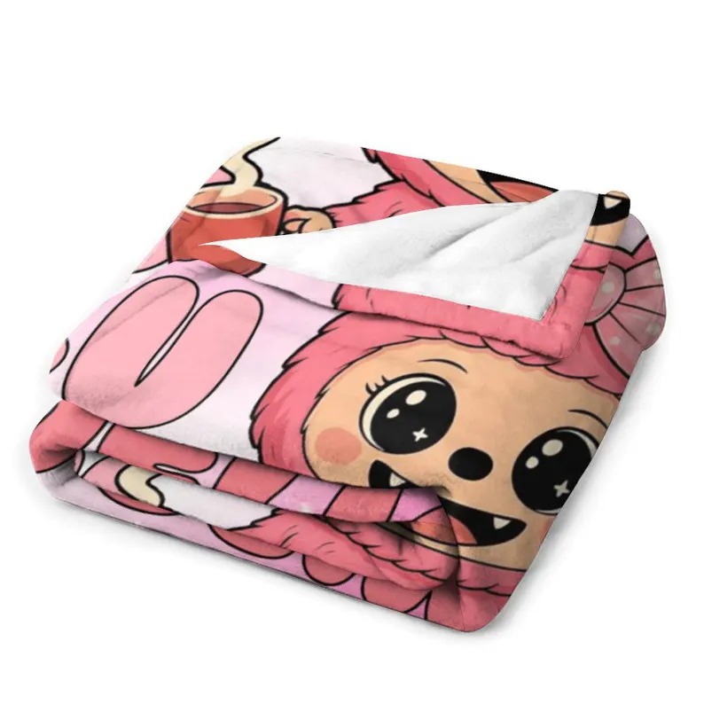 Personalized Lovely Labubu Sweet Pink Fleece Blanket