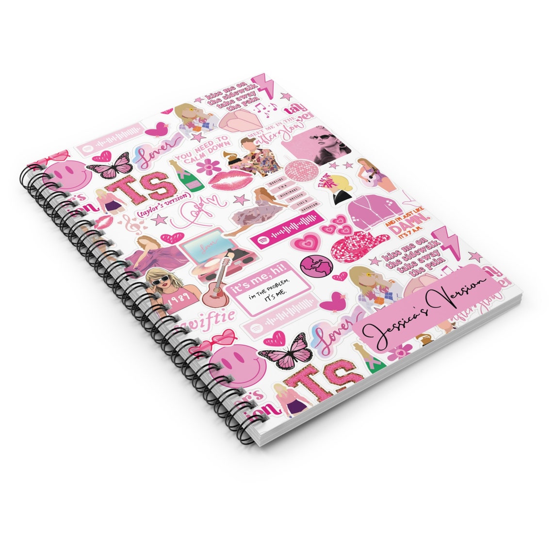 Personalized Lovely Taylor Spiral Notebook, Swiftiee Journal Notebook, Gift for Swiftiee Hardcover Journal In My Book Era, Book Eras Tour,Pink Personalized Notebook