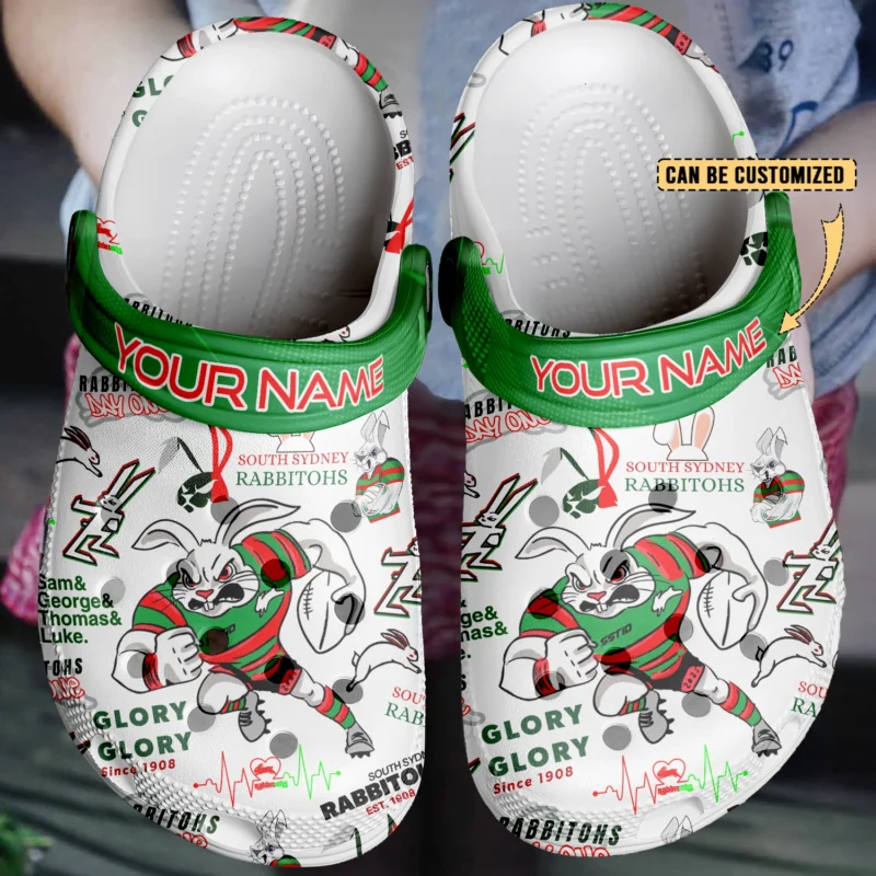 Personalized South Sydney Rabbitohs NRL Sport Clogs For Kids And Adults