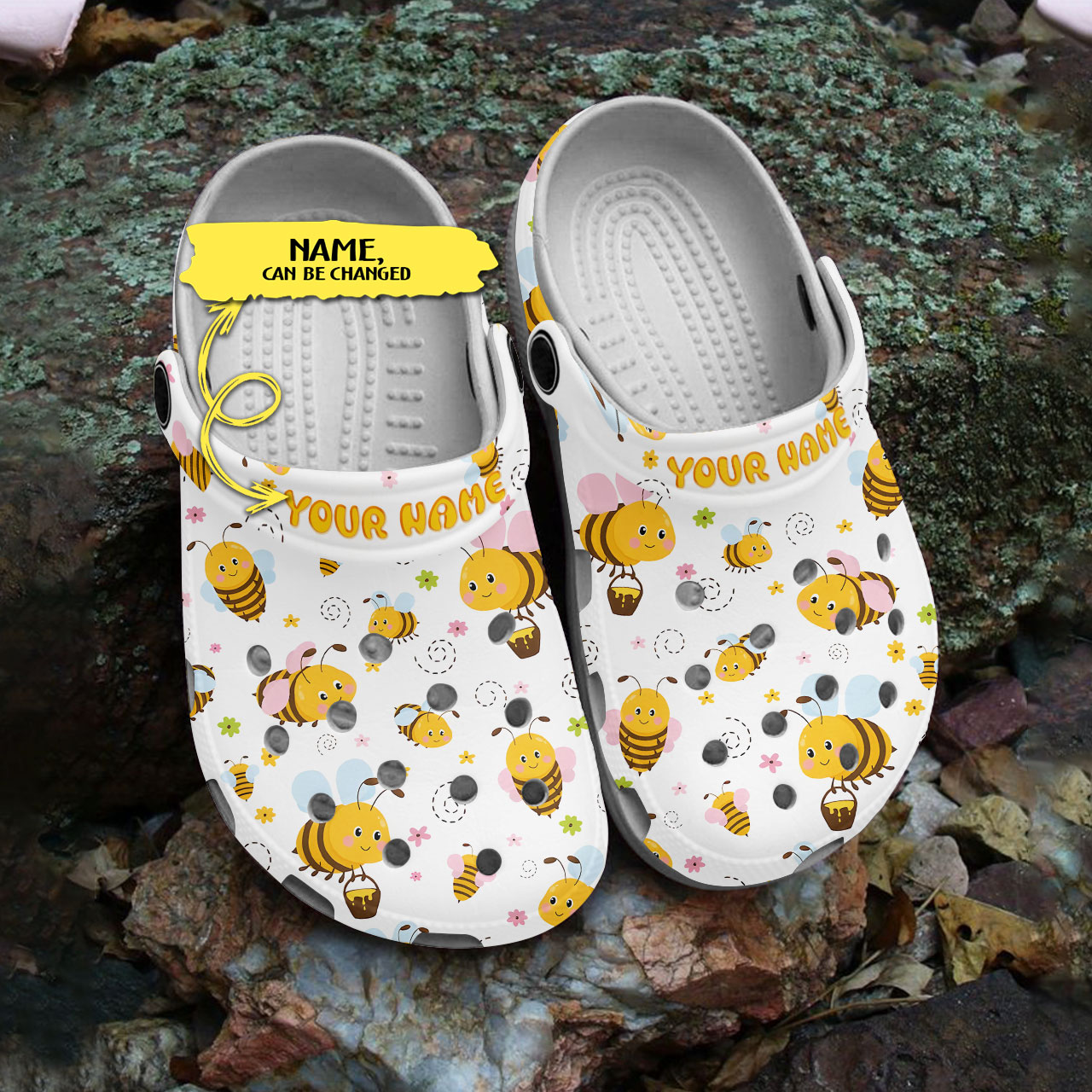 Size ChartLet’s upgrade your outfit and become stylish in every step with our stunning Personalized White Slippers Happy Working Bees Cartoon Style Clogs in the trendy collection of Bee Clogs.