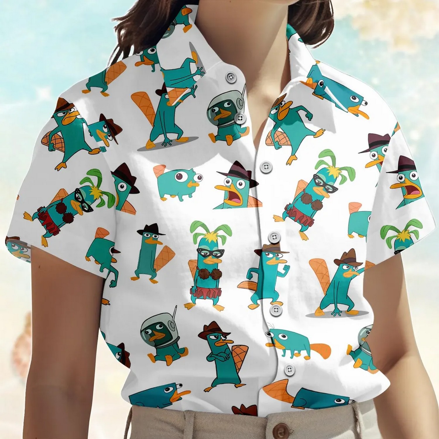 Phineas And Ferb Pattern White Hawaiian Shirt