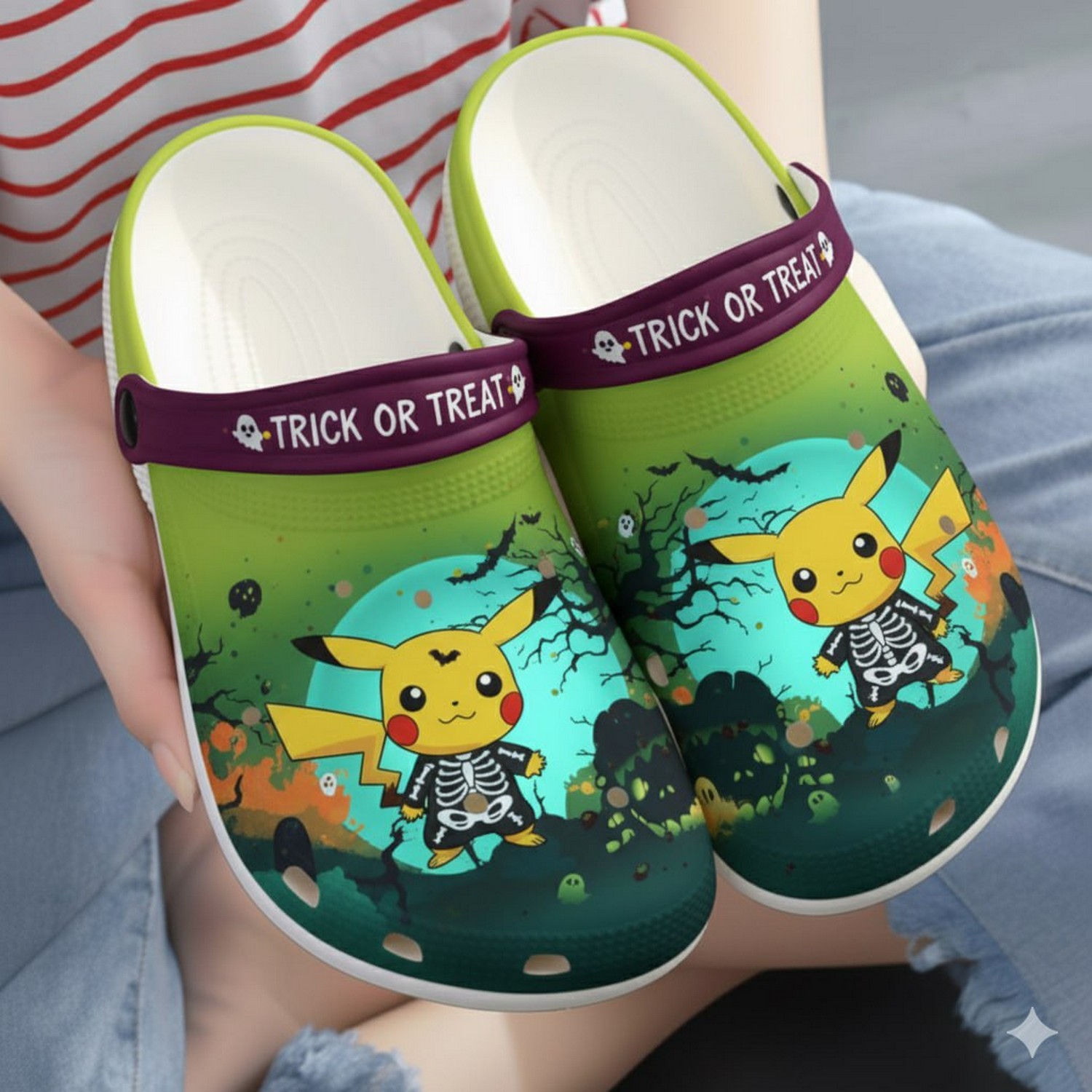 Happy Halloween Pikachu Green Night Trick Or Treat Clogs For Kids And Adults