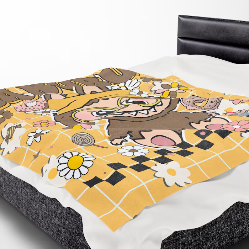 Soft & Cozy Brown Labubu And Sweets Cartoon Fleece Blanket