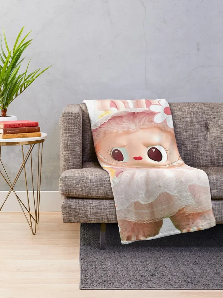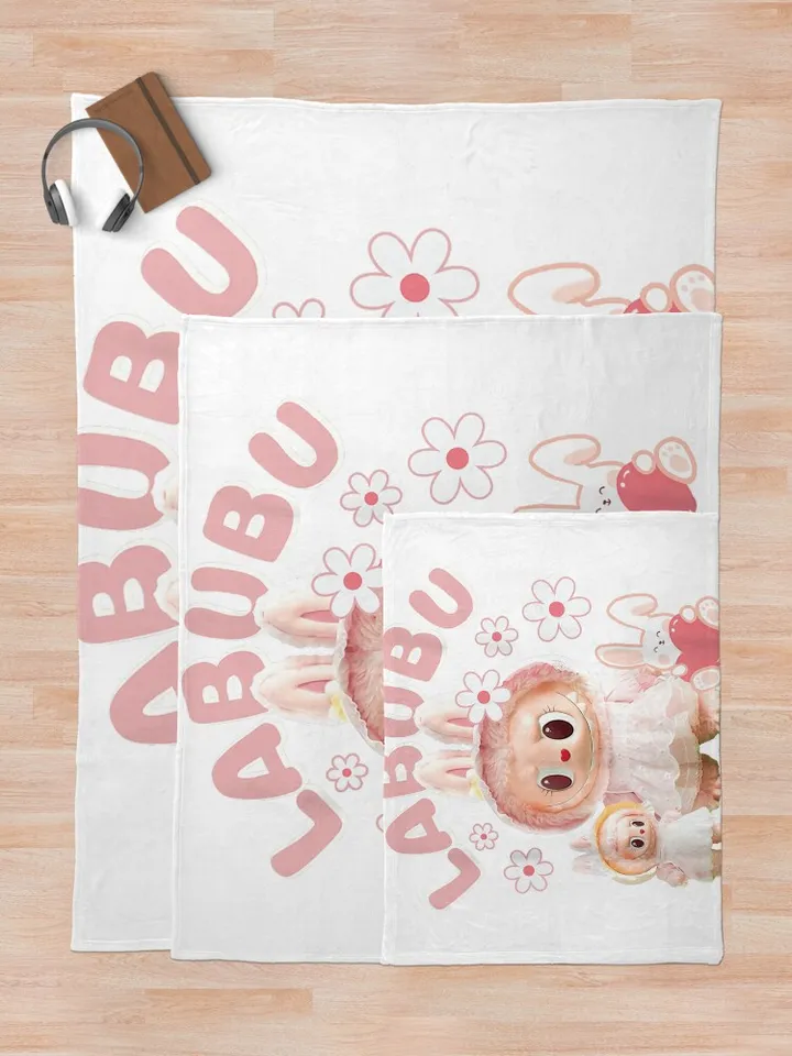 Sweet Labubu Doll And Cute White Bunny Fleece Blanket, Unique Gift For Labubu Fans